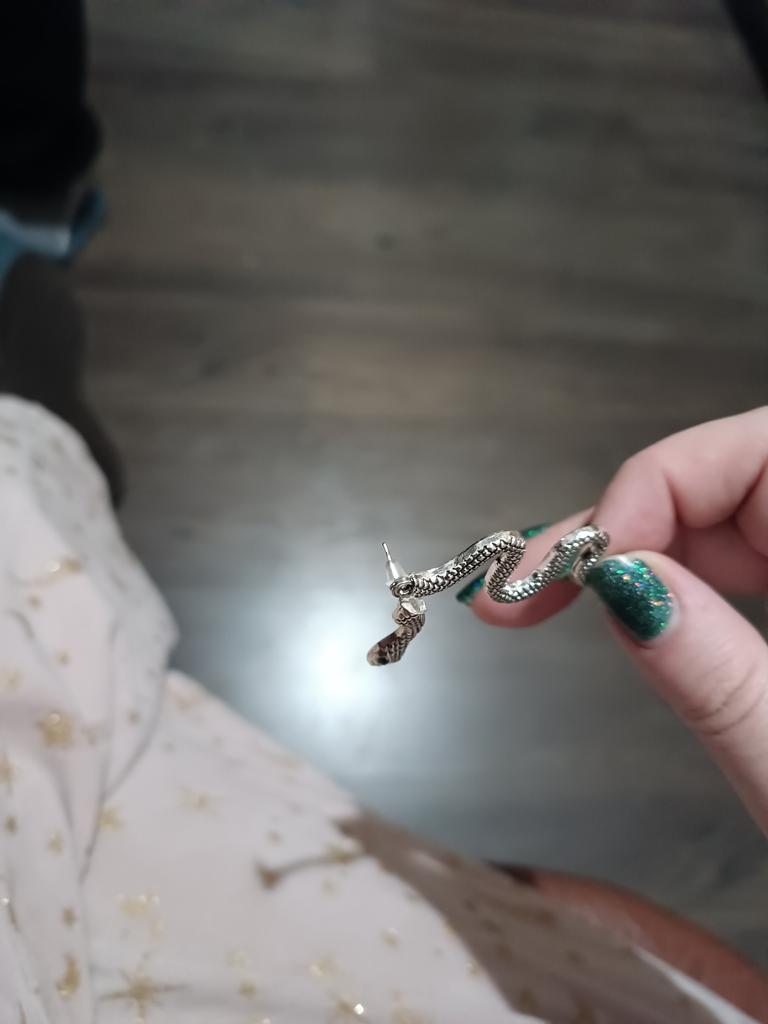 До Беларуси серьги шли полтора месяца. Металл добротный, но серьги не такие как на фото. Первая половина змейки обрезана неправильно.