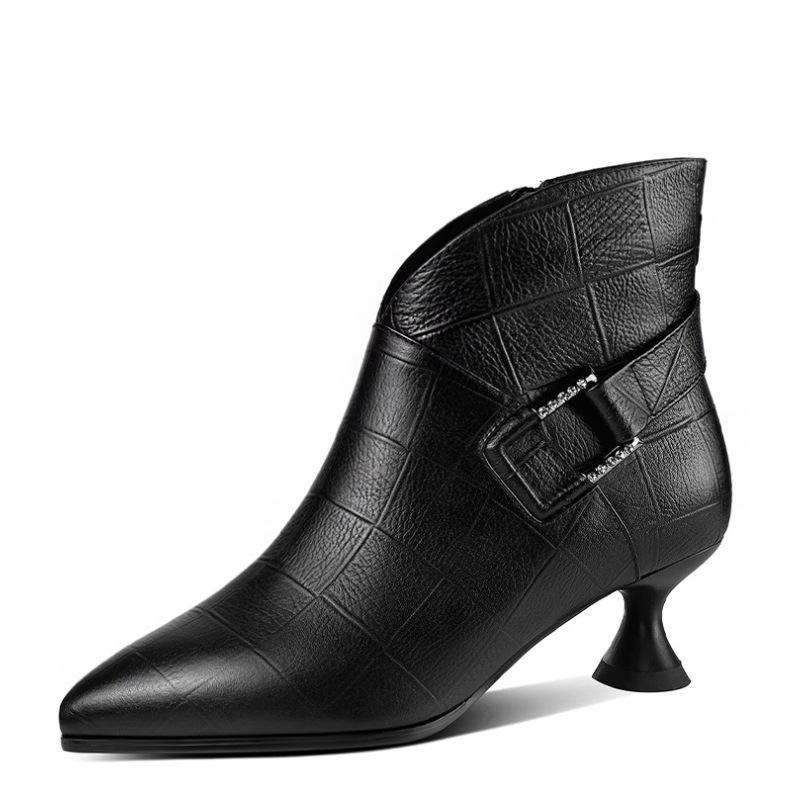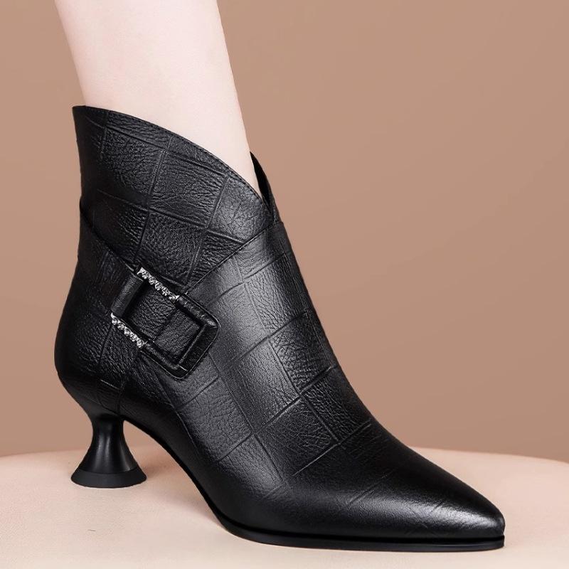 Осенние и зимние короткие сапоги женские остроносые ботильоны на среднем каблуке одинарные сапоги на небольшом толстом каблуке модные высококачественные женские сапоги