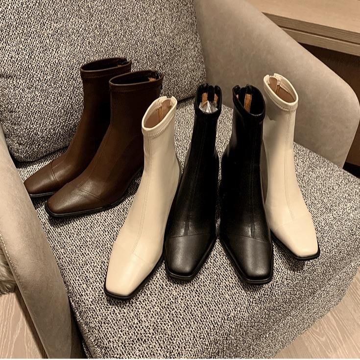Сапоги с квадратной головкой и толстым каблуком и ботильонами, темпераментные эластичные короткие сапоги на высоком каблуке, женские универсальные удобные мягкие тонкие сапоги из кожи — купить товар онлайн с бесплатной доставкой по всему миру!