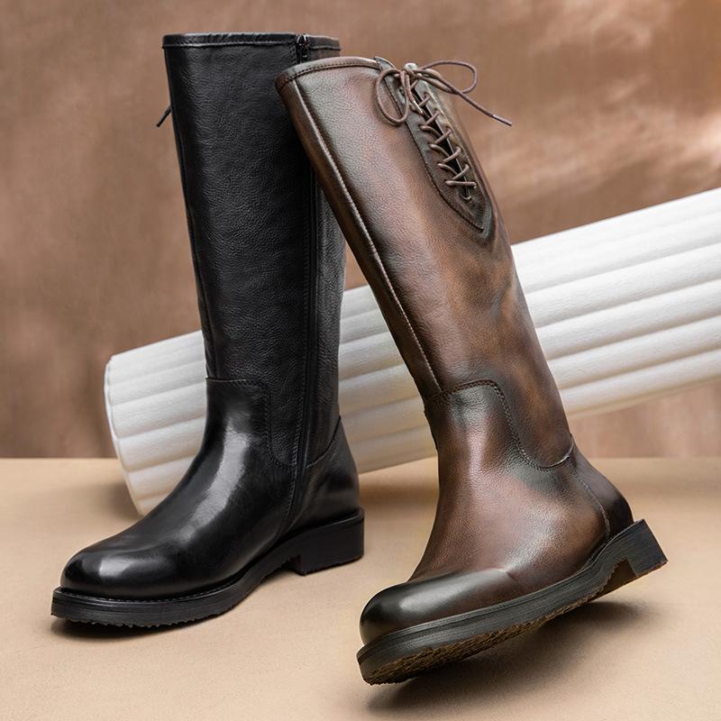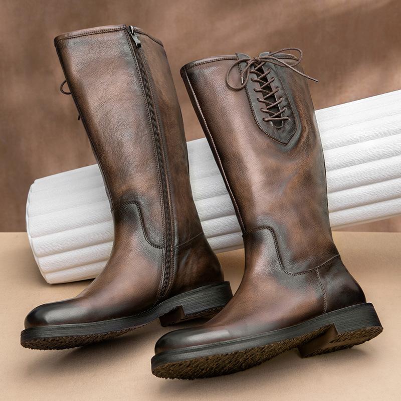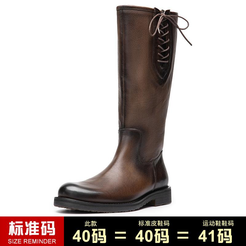 Осенние и зимние ветро-коричневые сапоги Монгольские рыцарские сапоги Мужские сапоги для верховой езды Высокие кожаные сапоги Длинные сапоги для верховой езды