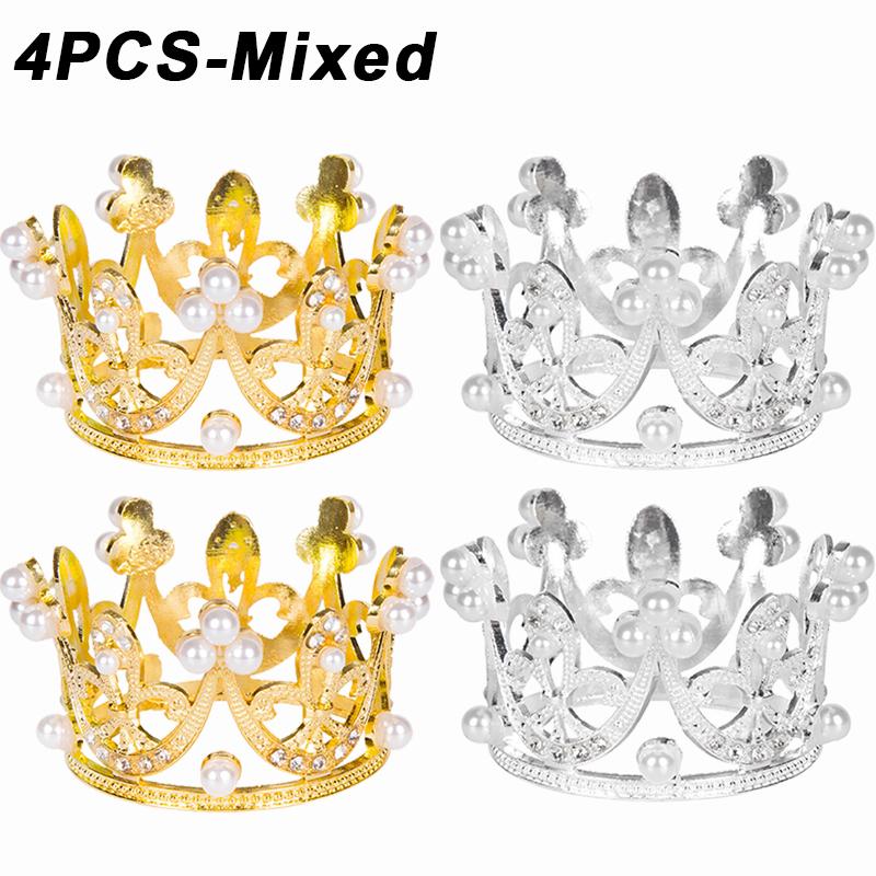 4/1 шт. Мини-корона для кекса, принцесса, жемчужная тиара, детские украшения для волос для свадьбы, дня рождения, вечеринки, украшения для торта