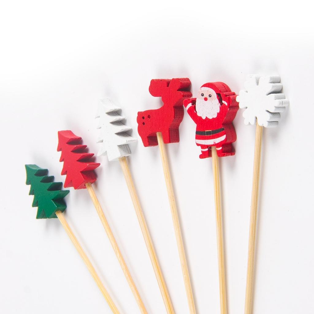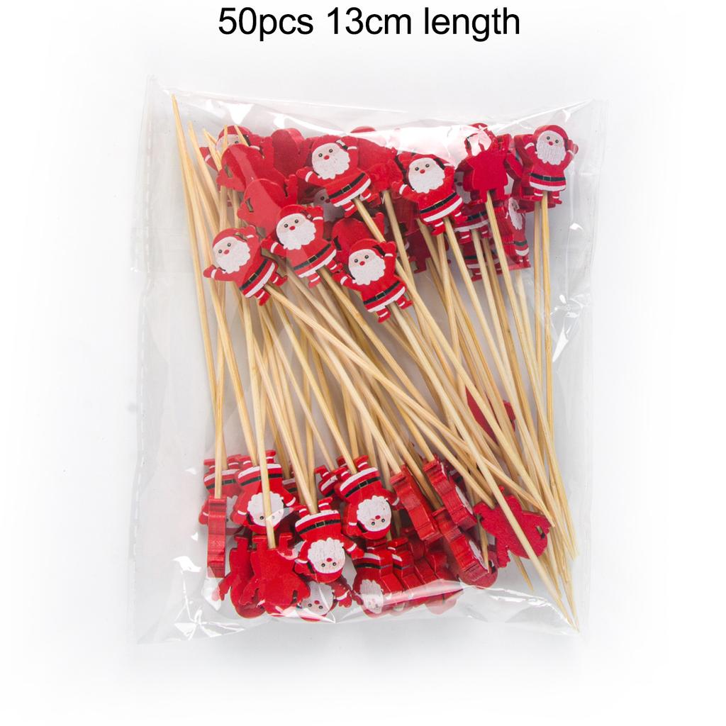 50 шт. Рождественские палочки для еды Зубочистки Десертный стол Салат Фруктовая вилка Торт Маффин Рождественские палочки для вечеринки Рождественский декор Ноэль Навидад 2024