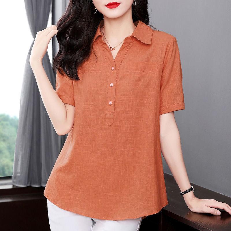 Летняя рубашка из хлопка и льна с короткими рукавами, повседневная рубашка больших размеров для женщин, свободный крой, утягивающий топ, блокирующий кожу