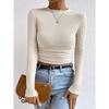 Круглый вырез Slim Fit вязаный свитер однотонный вязаный свитер футболки с длинными рукавами женские — купить товар онлайн с бесплатной доставкой по всему миру!