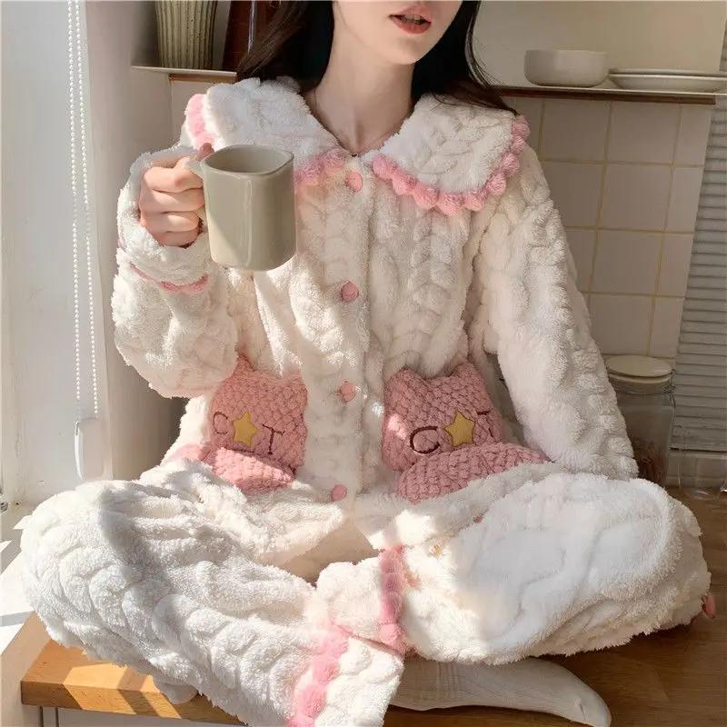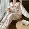 Пижама женская зимняя толстая коралловая бархатная сладкая и милая пшеничная кукольная воротник принцесса ветер кардиган стиль домашняя одежда которую можно носить