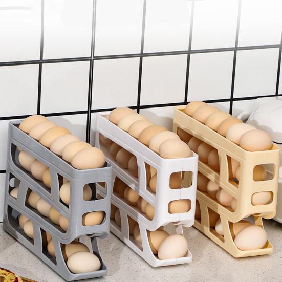 Эта четырехслойная подставка для яиц вмещает около 30 яиц, что позволяет сэкономить место для вашего холодильника или кухонной стойки..