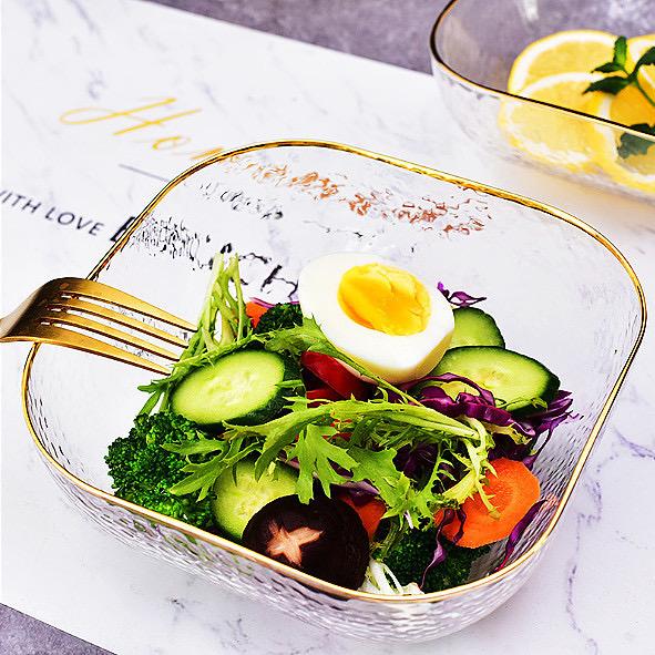 Простая квадратная салатница, посуда, стеклянная салатница, миска для фруктов, миска для супа, миска для десерта, практичная кухонная утварь
