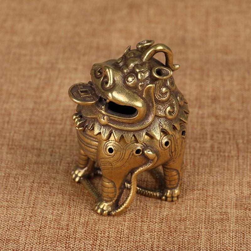 Античная бронза, китайская мифическая фигурка зверя, курильницы, орнамент, классическая латунная курильница из сандалового дерева, украшение для дома, ремесла