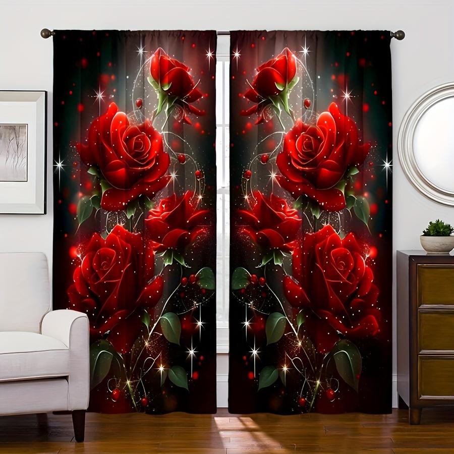 2 шт., Красивые красные розы, защита конфиденциальности, занавеска для гостиной, романтическая мечта, креативное украшение, полупрозрачная занавеска для спальни