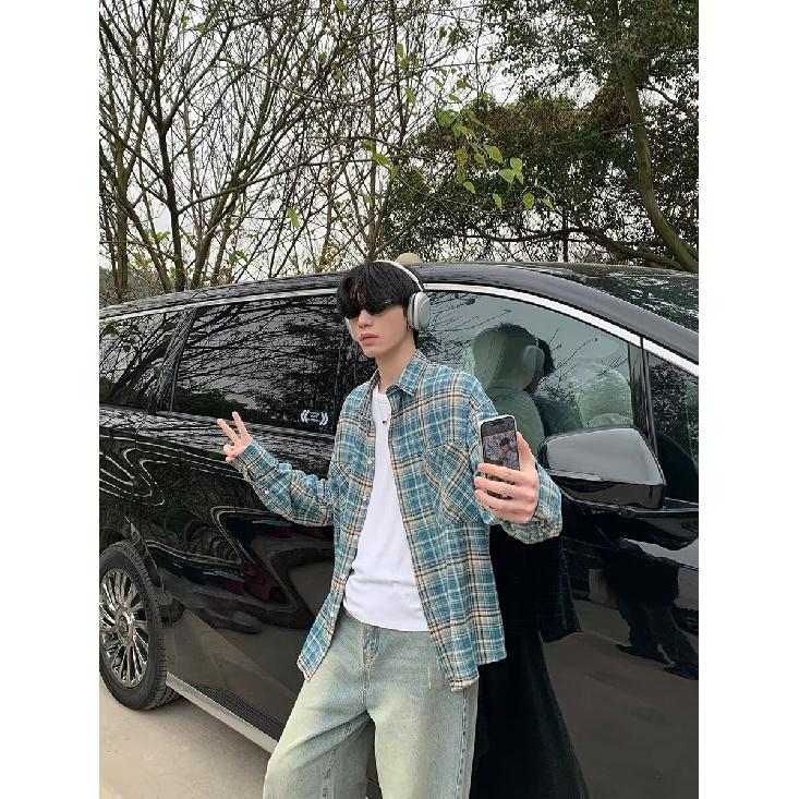 2024 Клетчатая рубашка с длинным рукавом в японском стиле Гонконга Ins Свободная рубашка для мальчиков Летнее модное универсальное повседневное пальто — купить товар онлайн с бесплатной доставкой по всему миру!
