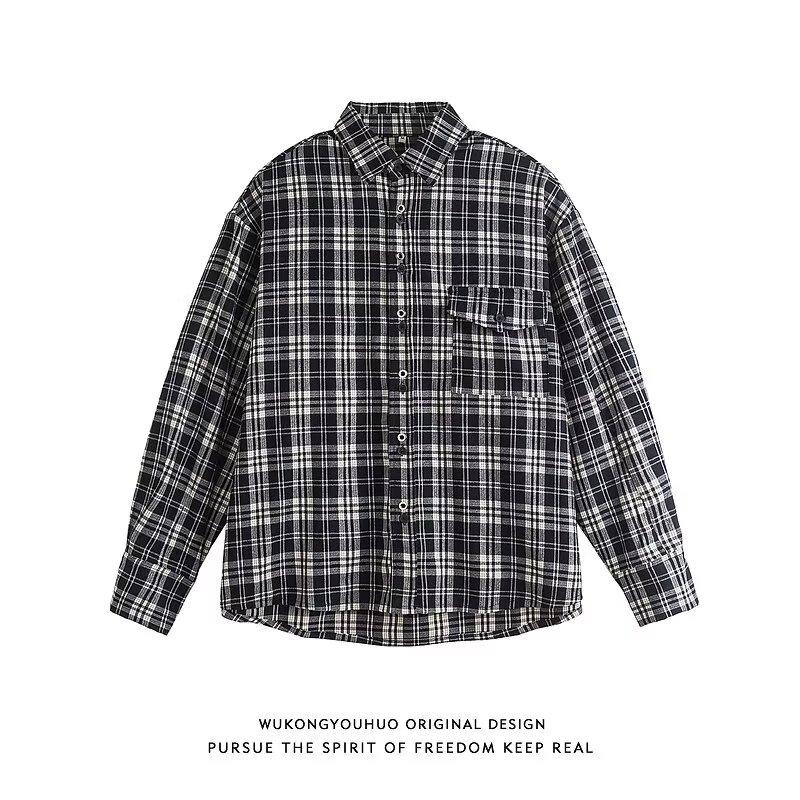 2024 Клетчатая рубашка с длинным рукавом в японском стиле Гонконга Ins Свободная рубашка для мальчиков Летнее модное универсальное повседневное пальто — купить товар онлайн с бесплатной доставкой по всему миру!