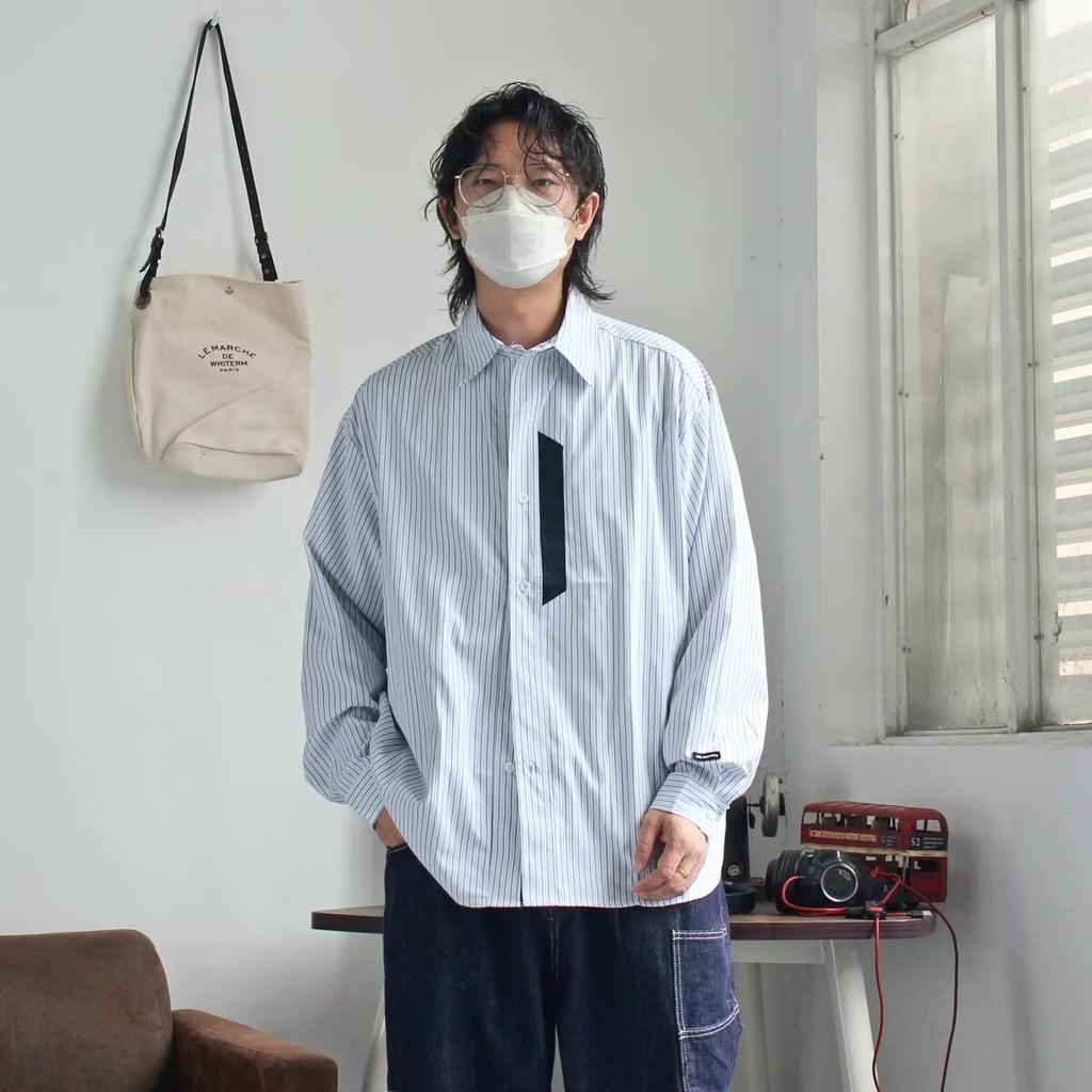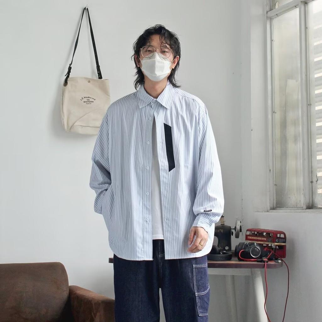2024 Полосатая рубашка с длинным рукавом в японском стиле Гонконга Ins Свободная рубашка для мальчиков Летнее модное универсальное повседневное пальто