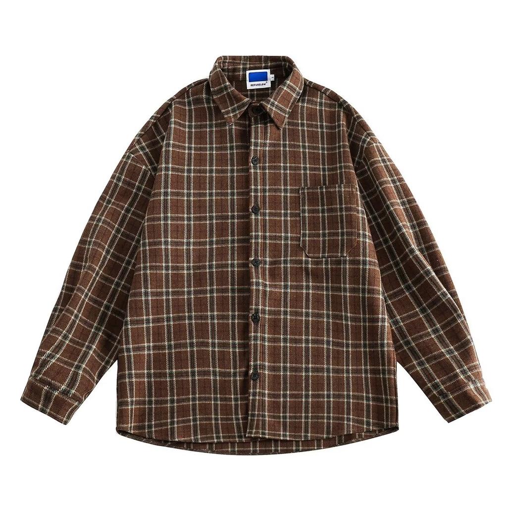 Американская повседневная коричневая клетчатая рубашка, пальто для мальчиков и девочек, блузка в студенческом стиле, простая свободная ретро-блузка с длинными рукавами