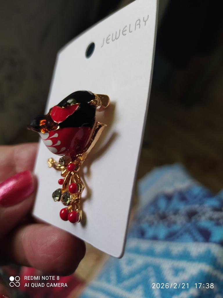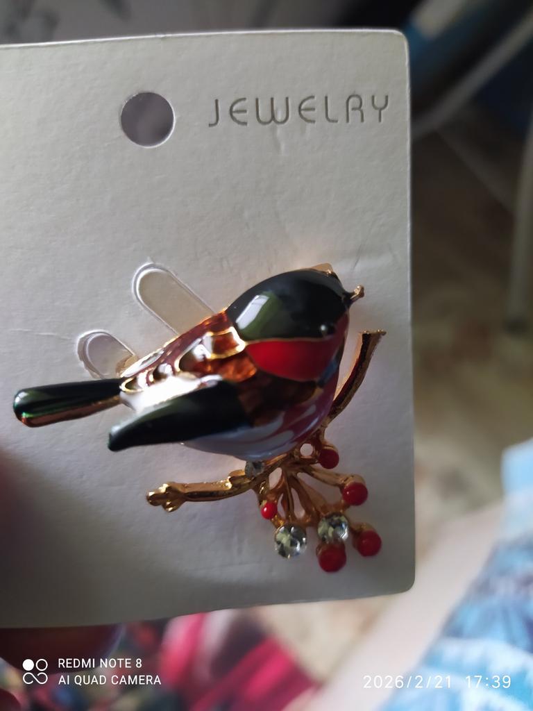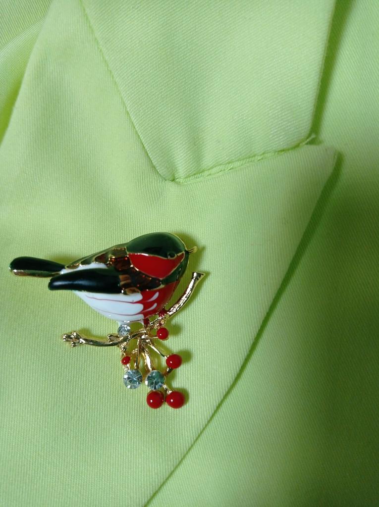Брошка очаровательная. Снегирь объёмый, не плоский. Смотрится очень красиво.