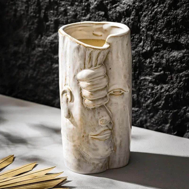Керамическая ретро-ваза с сухоцветами Керамическая уникальная ретро-богемная декоративная домашняя декорация в стиле настольной эстетики