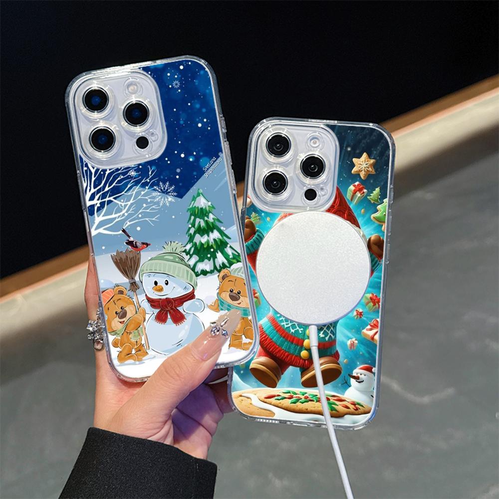 Ae108 С Новым годом, Рождеством, Magsafe Прозрачные чехлы для Samsung S23 S24 Ultra S21 iPhone 16 Pro Max XR Магнитная беспроводная зарядка Задняя крышка