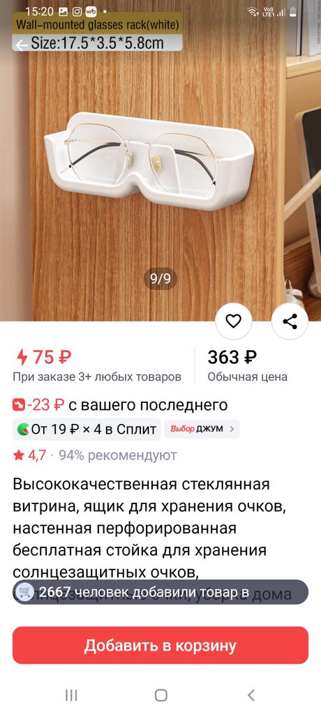 Заранее я зря радовалась:при получении посылки и дальнейшем вскрытие упаковки "полки-очешника" оказалось, что она искривлена в том месте, где прикрепляется скотчем, поэтому она через пару часов, отклеившись, упала. На следующий день при ПОВТОРНОМ ПРИКРЕПЛЕНИИ ЕЁ К ДВЕРИ ШКАФА она снова ОТВАЛИЛАСЬ! 😭 При этом и ОЧКИ мои разбились!.. Убедительно прошу возместить мне зря потраченные деньги, т.к. ЭТОЙ ПОЛОЧКОЙ НЕВОЗМОЖНО ПОЛЬЗОВАТЬСЯ!!!