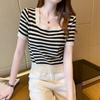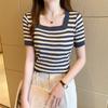 YYFS Женская мода повседневная летняя весна полосатый принт короткий рукав квадратный воротник блузки и рубашки