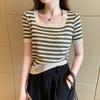 YYFS Женская мода повседневная летняя весна полосатый принт короткий рукав квадратный воротник блузки и рубашки — купить товар онлайн с бесплатной доставкой до всему миру!