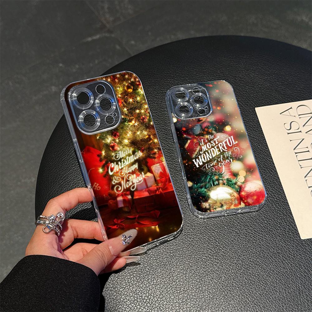 Ae115 Merry Christmas Happy New Year Magsafe Transparent Cases для Samsung S23 S24 Ultra S21 FE iPhone 16 Pro Max Magnetic Wireless Charge Back Cover