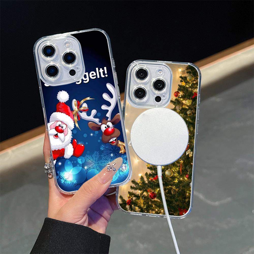 Ae117 Merry Christmas Happy New Year дизайн Magsafe прозрачные чехлы для Samsung S23 S24 Ultra iPhone 16 Pro Max магнитная беспроводная зарядка задняя крышка