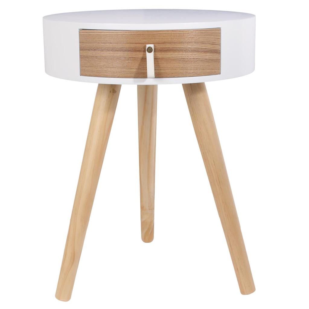 Этот предмет мебели с изысканным дизайном отличается круглой деревянной столешницей, украшенной встроенным ящиком, идеально подходящим для хранения небольших ночных вещей..