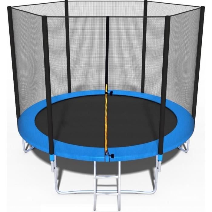 Trampoline - bleu - 252 cm - avec filet et échelle - jusqu'à 80 kg