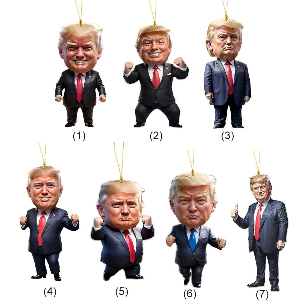 1 шт. Акриловое рождественское украшение в стиле Трампа, подвесное украшение для автомобиля и дерева, идеальный праздничный подарок, забавный мультяшный кулон