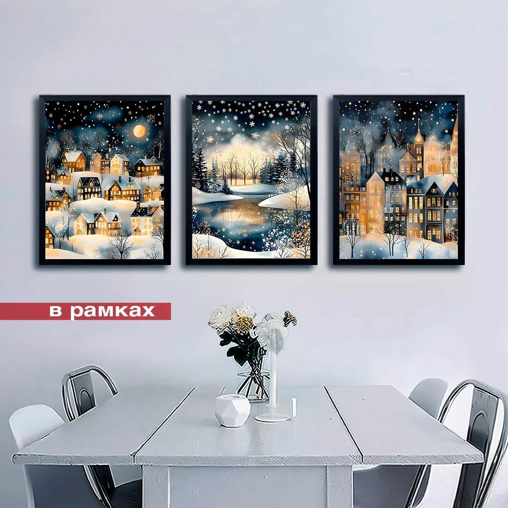 Праздничная деревня Рождественский постер художественная печать, праздничные украшения и веселье Счастливого Рождества гостиная спальня холст картина украшение
