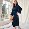 Модная женская пижама из сатина с длинными рукавами, отделкой из перьев и материалом Ice Silk
