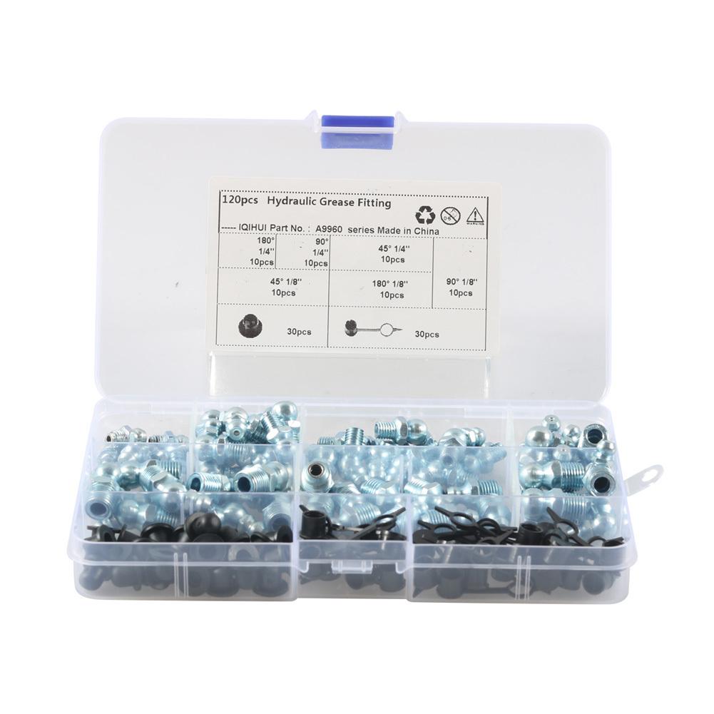 Набор из 120 шт. смазочных ниппелей 1/8" 1/4" с прямыми угловыми пресс-масленками с колпачком для замены отсутствующих или сломанных фитингов