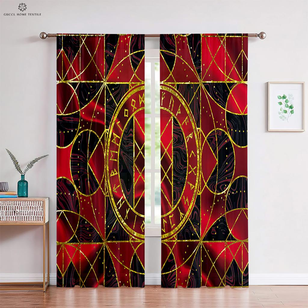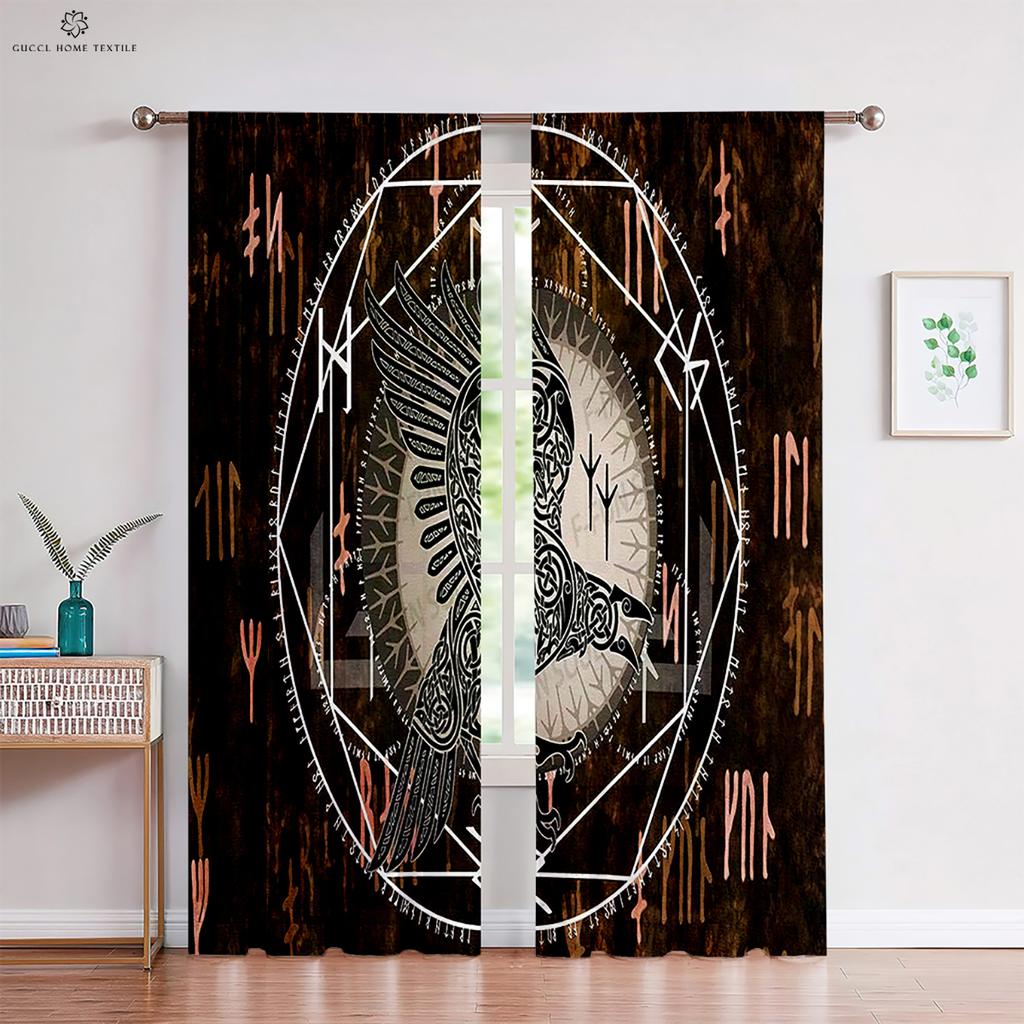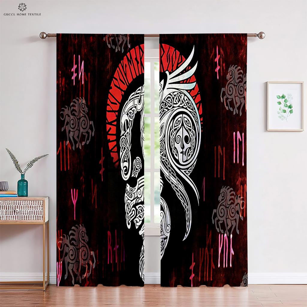 Узор Воин Руна Печатные Шторы Черно-Красные Полиэстеровые Волокна Шторы Спальня Гостиная Кухня Шторы 2 Шт.
