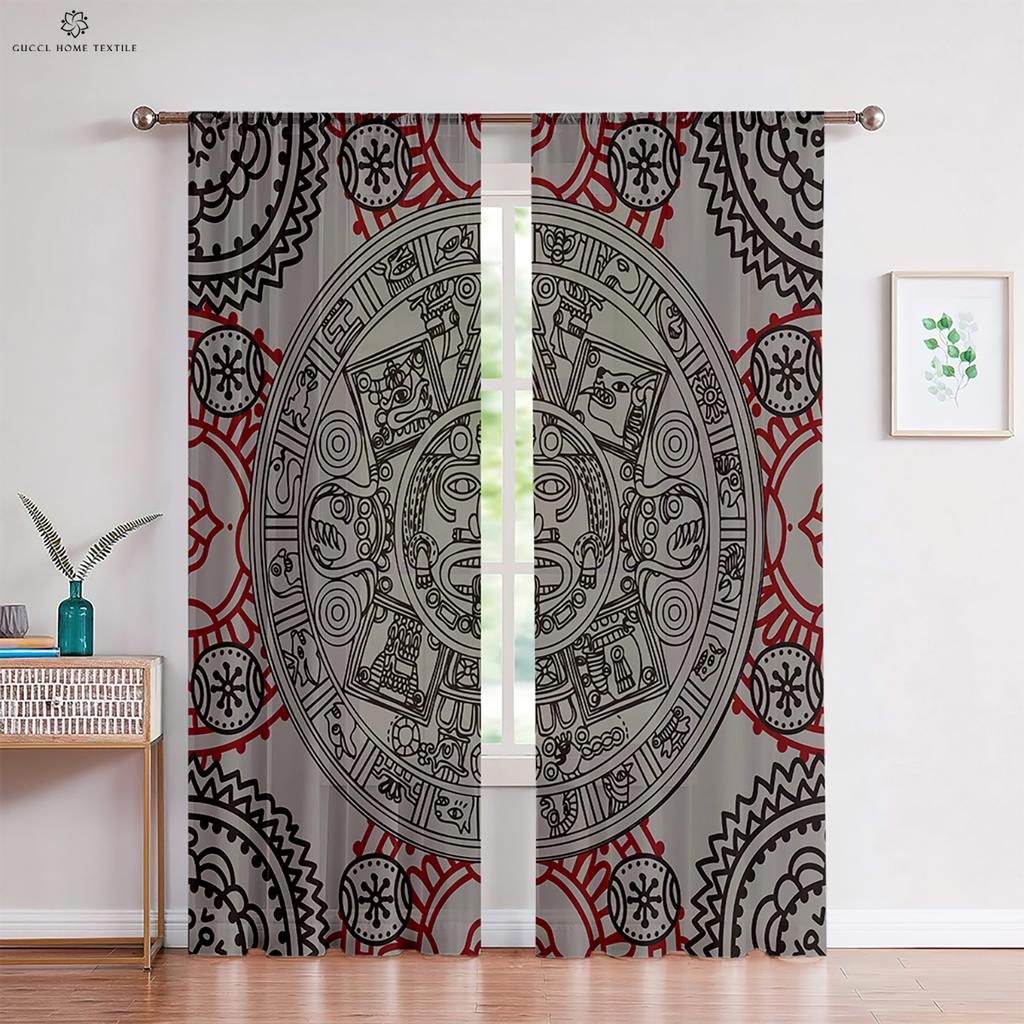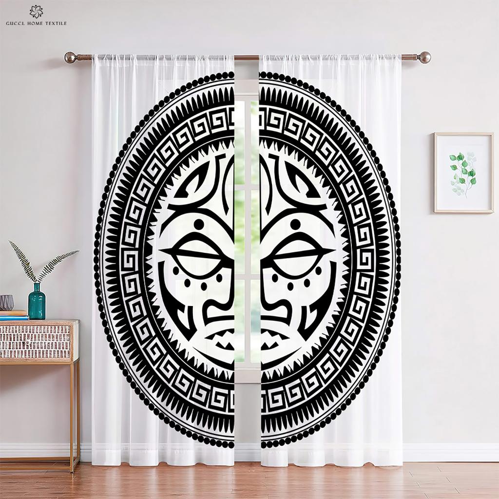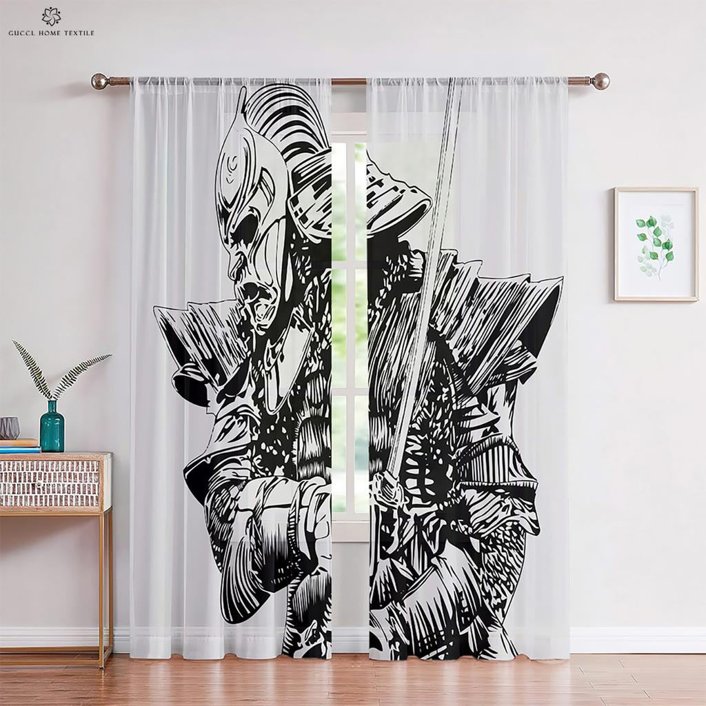 Узор Воин Руна Печатные Шторы Черно-Красные Полиэстеровые Волокна Шторы Спальня Гостиная Кухня Шторы 2 Шт.