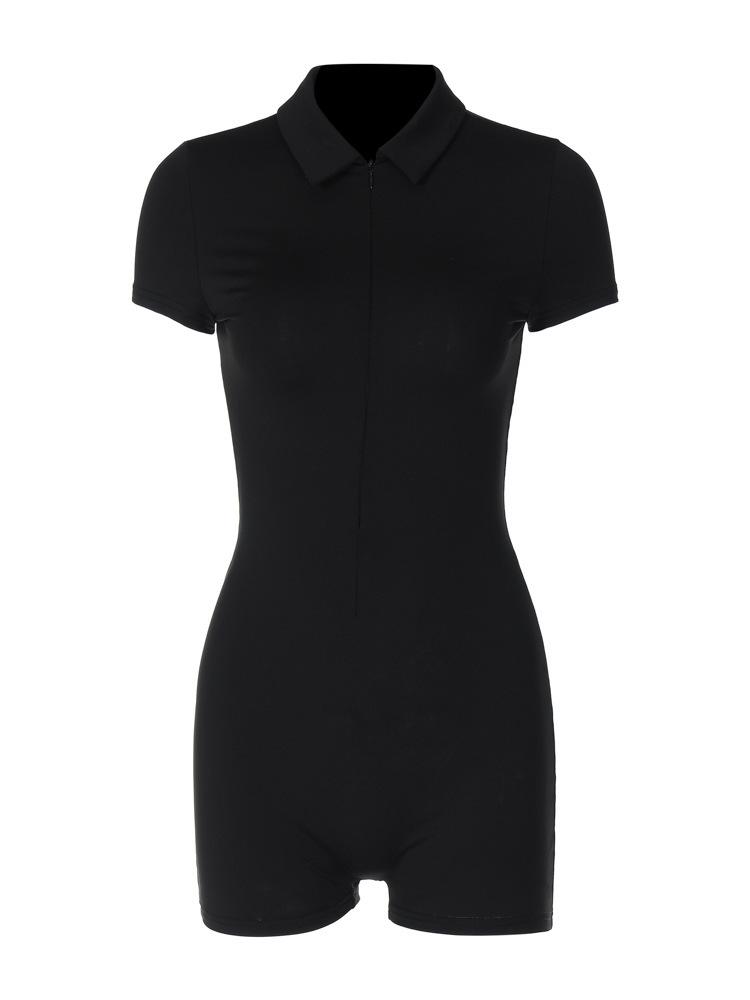 Весенний однотонный комбинезон с отворотом и молнией с коротким рукавом для занятий йогой и бегом