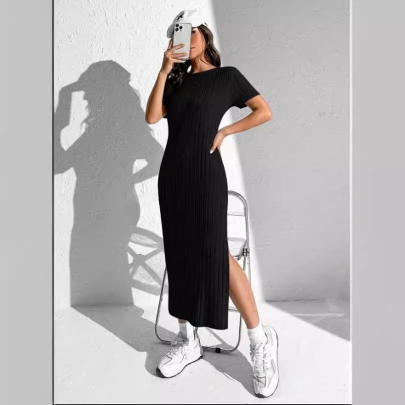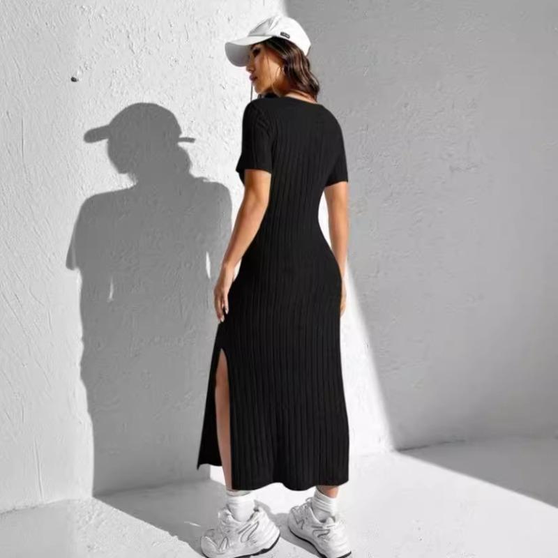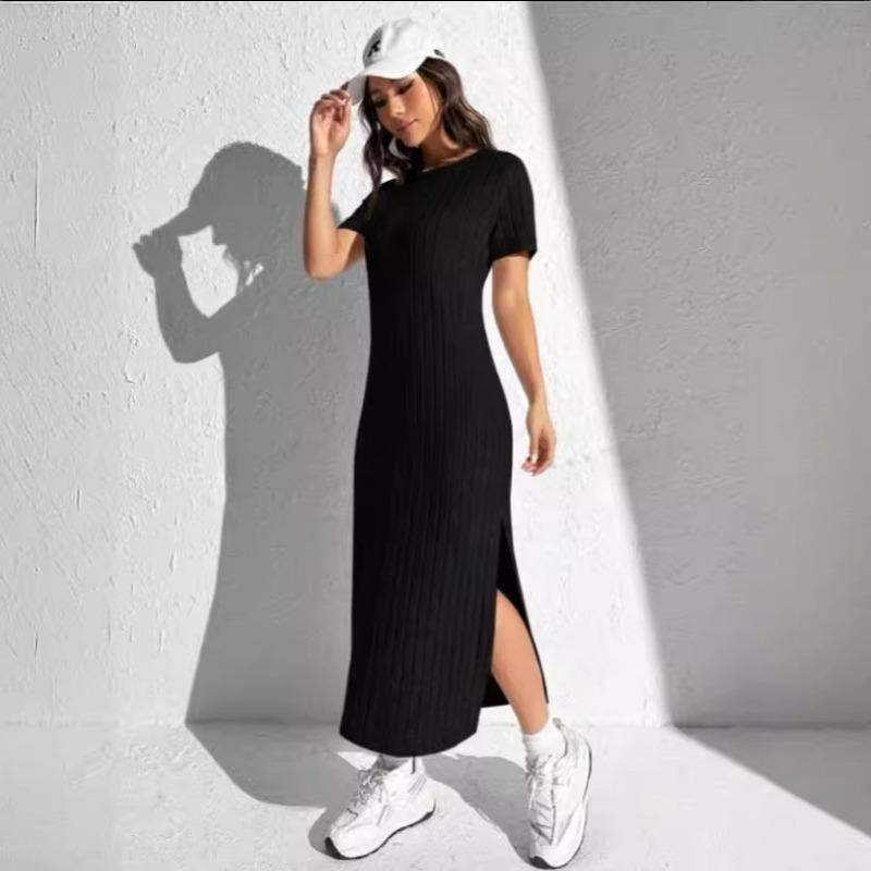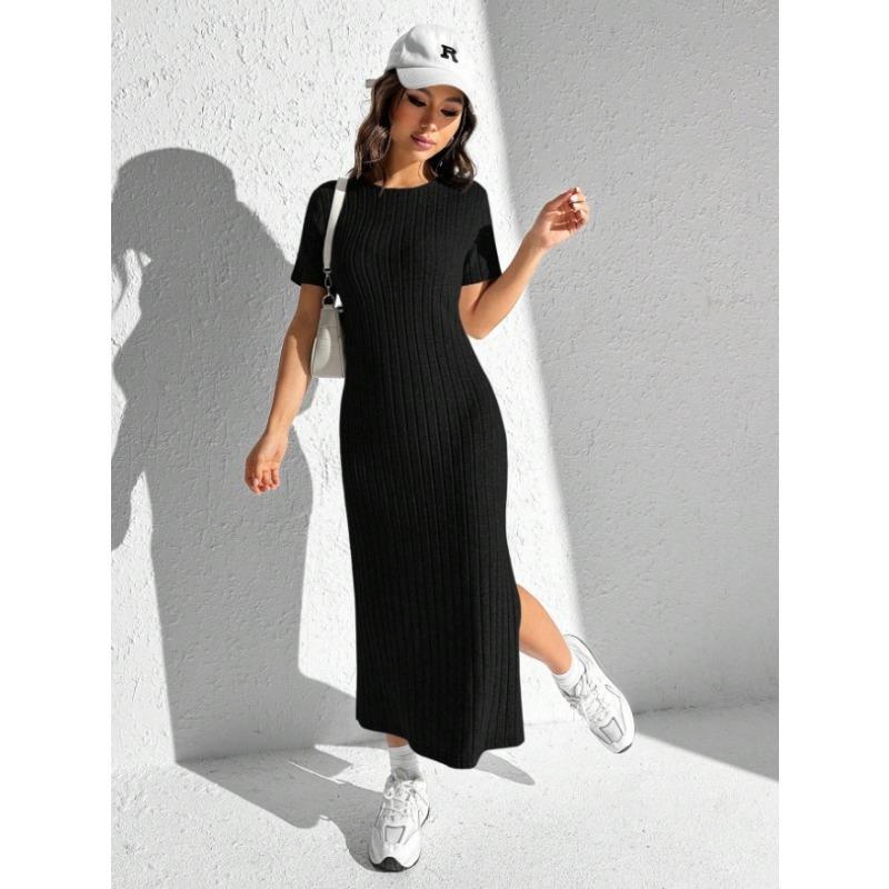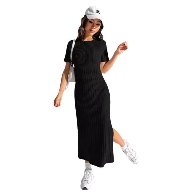 Летнее платье Rowan Pit Strip с круглым вырезом и короткими рукавами и разрезом сбоку