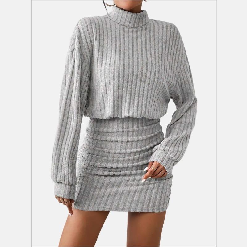 Женское осенне-зимнее платье в полоску с высоким воротником, рукавами-фонариками, плиссировкой и запахом на бедрах — купить товар онлайн с бесплатной доставкой по всему миру!