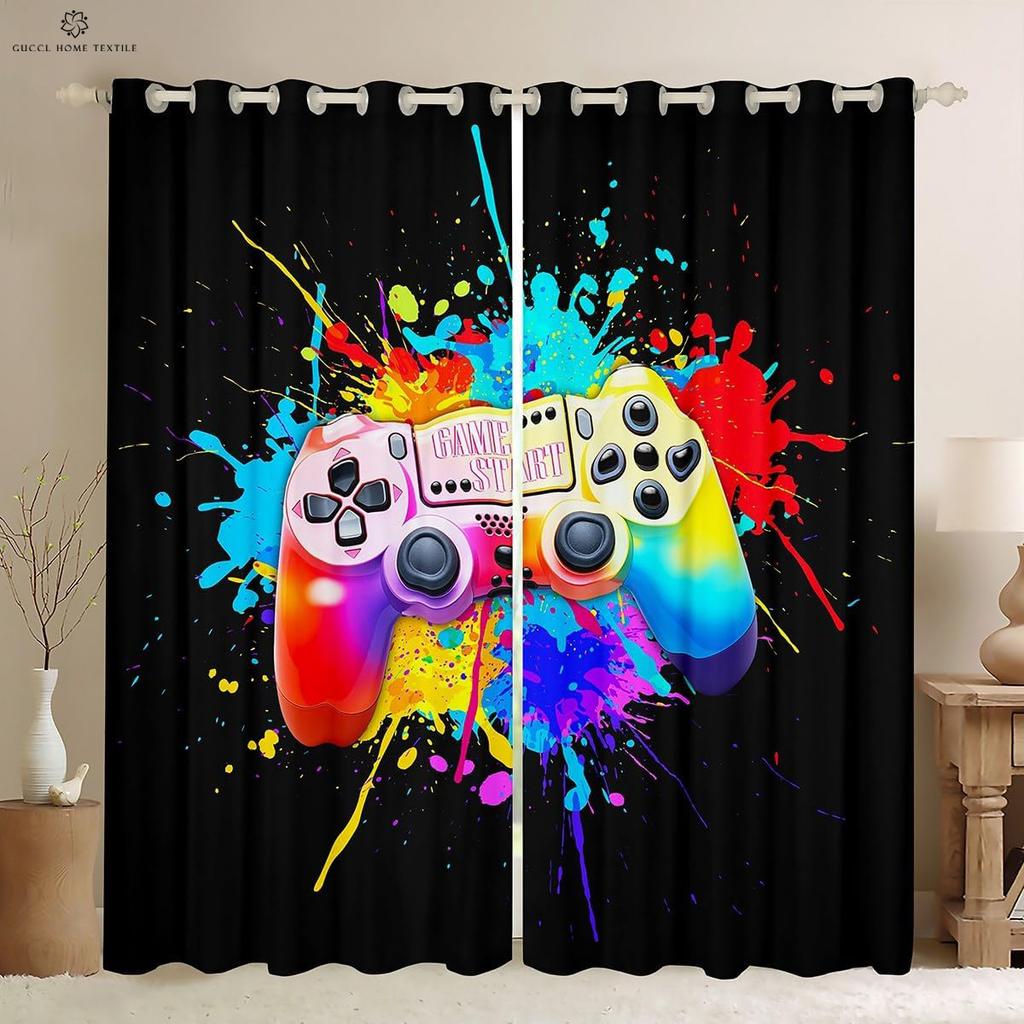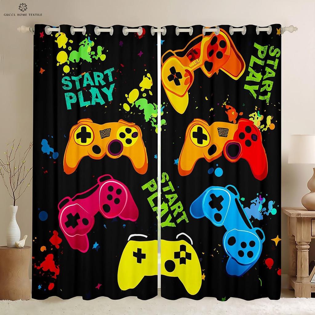 Шторы для игрового окна в киберспортивной комнате, красочная креативная печать, гостиная, спальня, украшения для киберспорта, индивидуальные шторы, 2 шт.