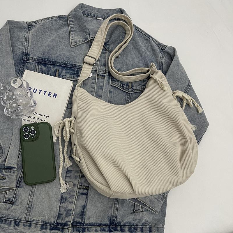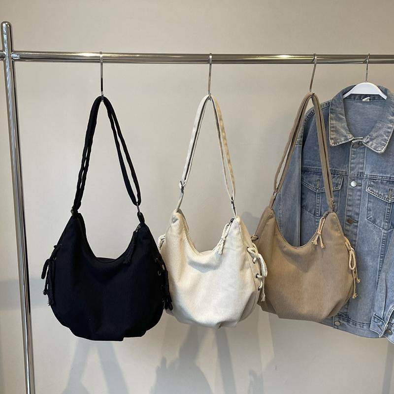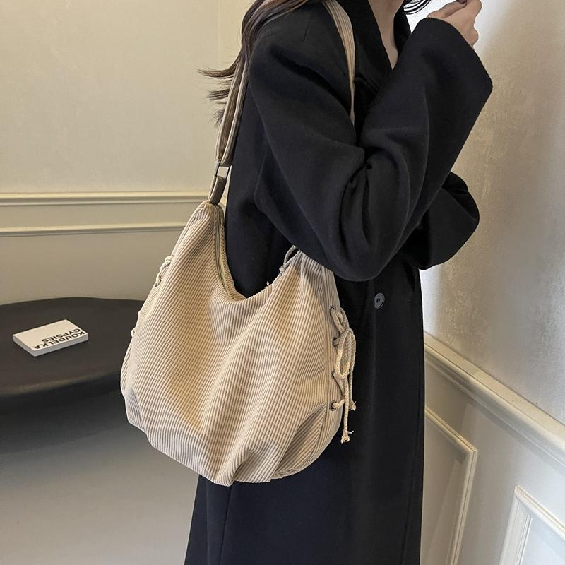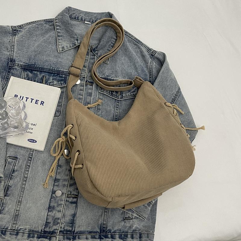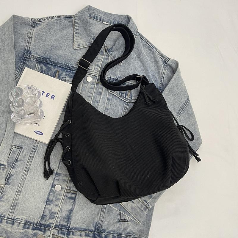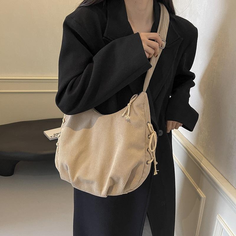 Вельветовая сумка через плечо женская однотонная винтажная сумка на шнурке подмышкой