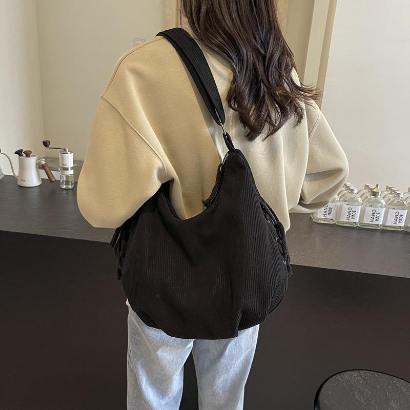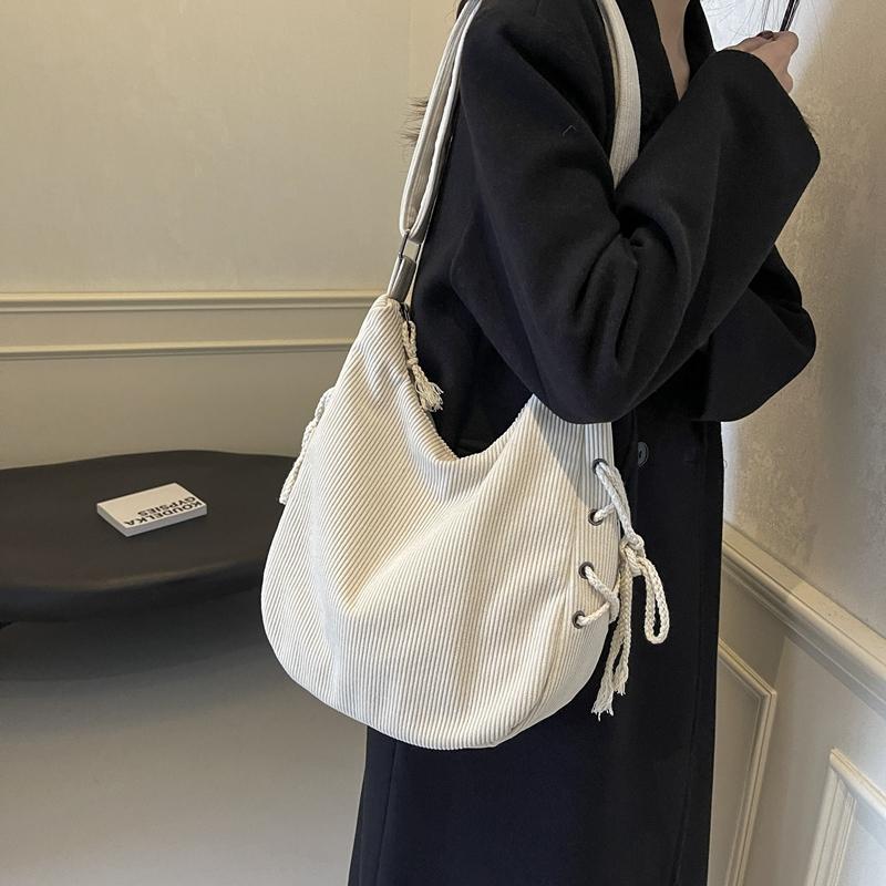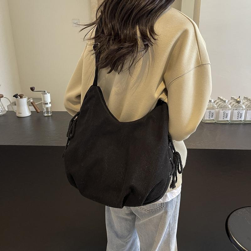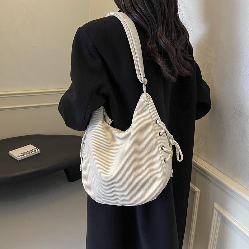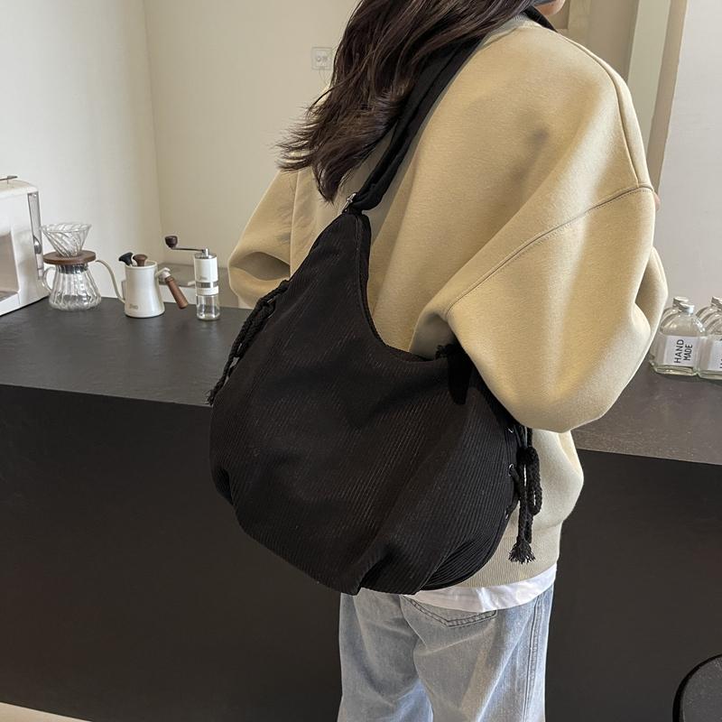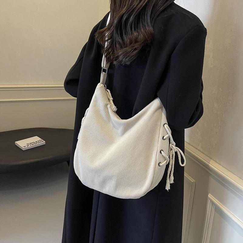 Вельветовая сумка через плечо женская однотонная винтажная сумка на шнурке подмышкой