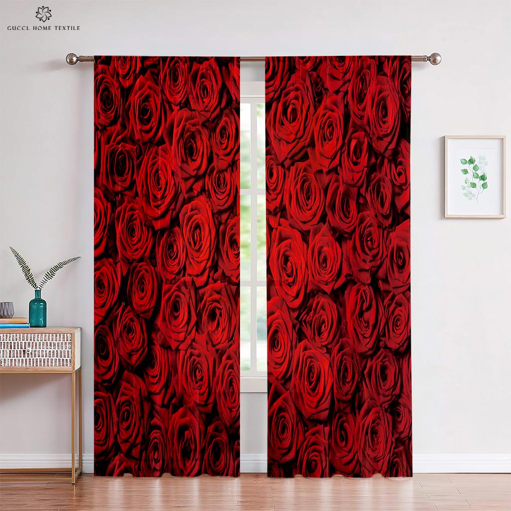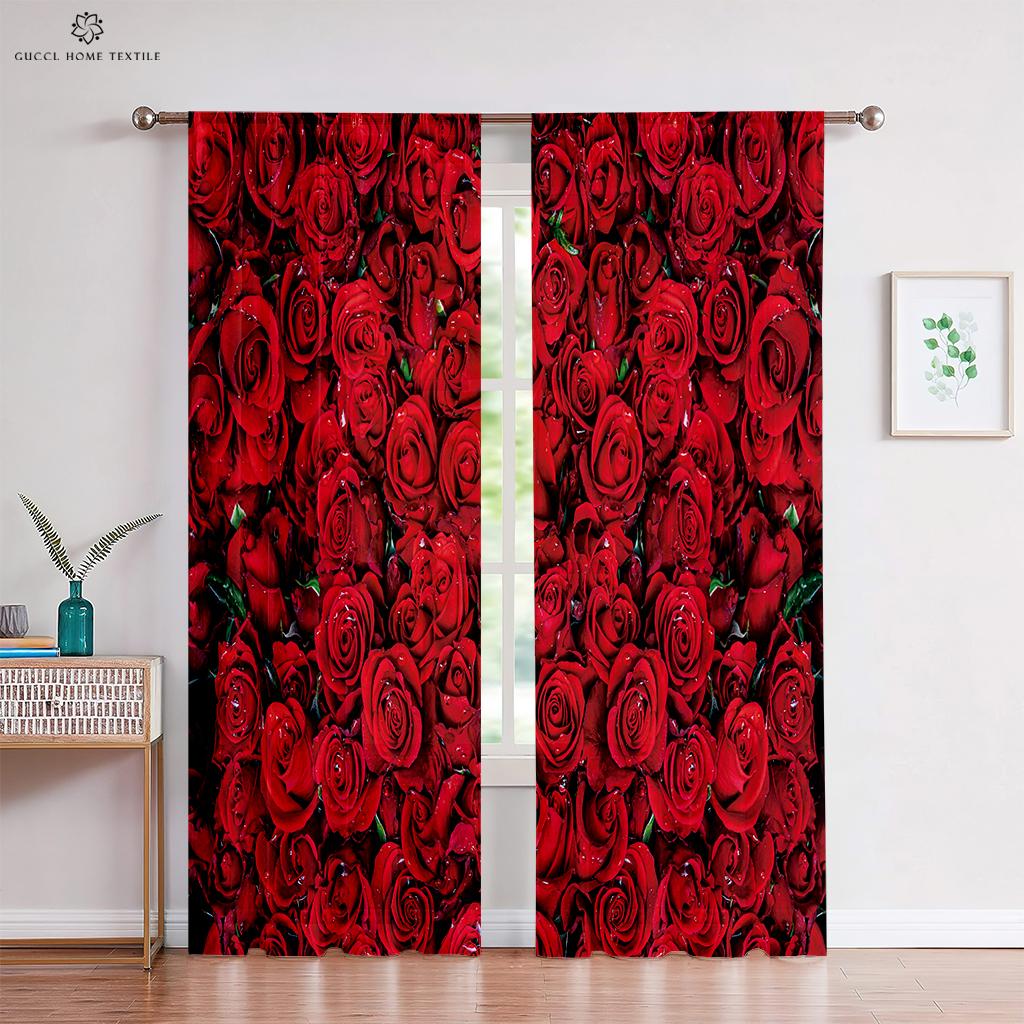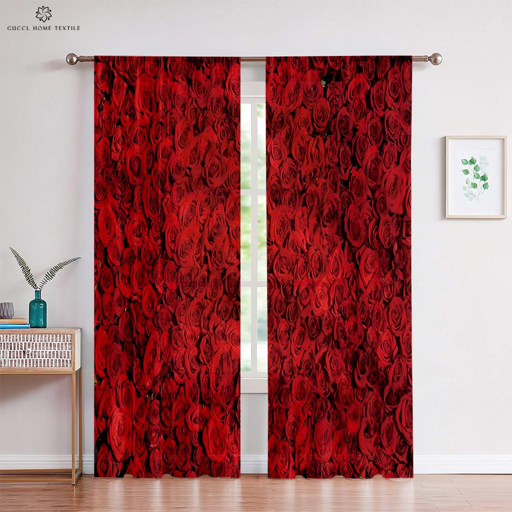 Шторы с розовыми цветами, теплые романтические ретро-красные шторы, украшение окна, чтобы блокировать конфиденциальность, шторы для спальни, кухни, гостиной