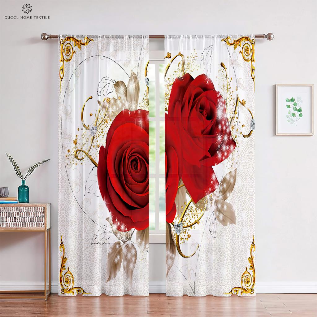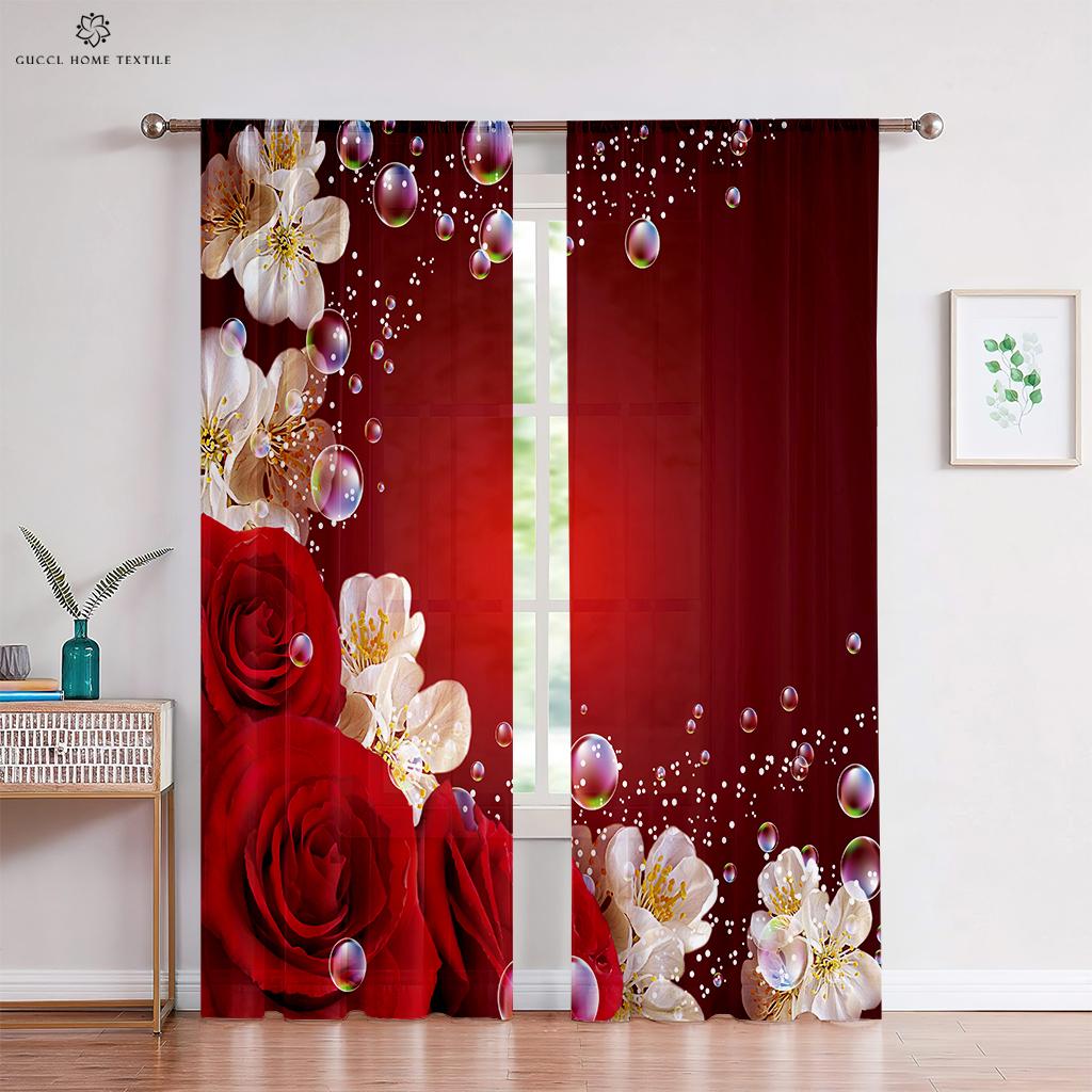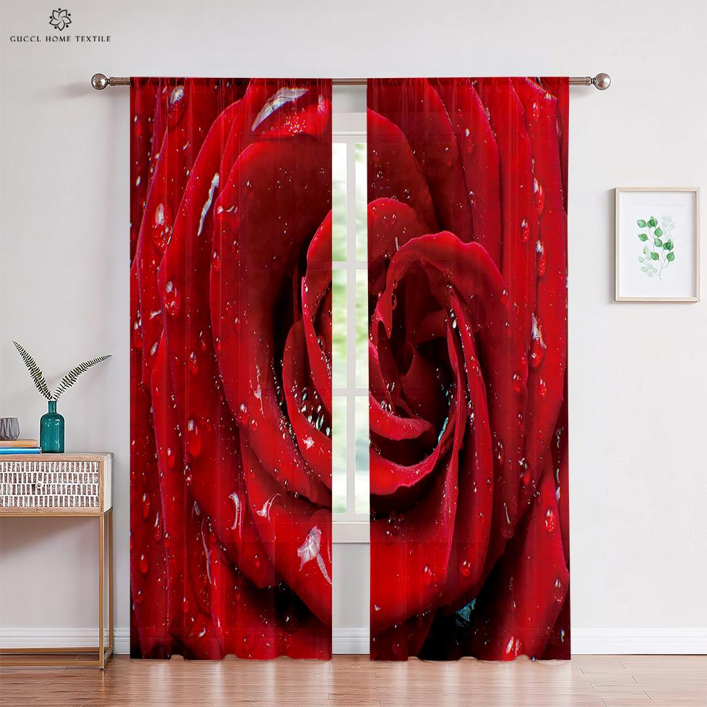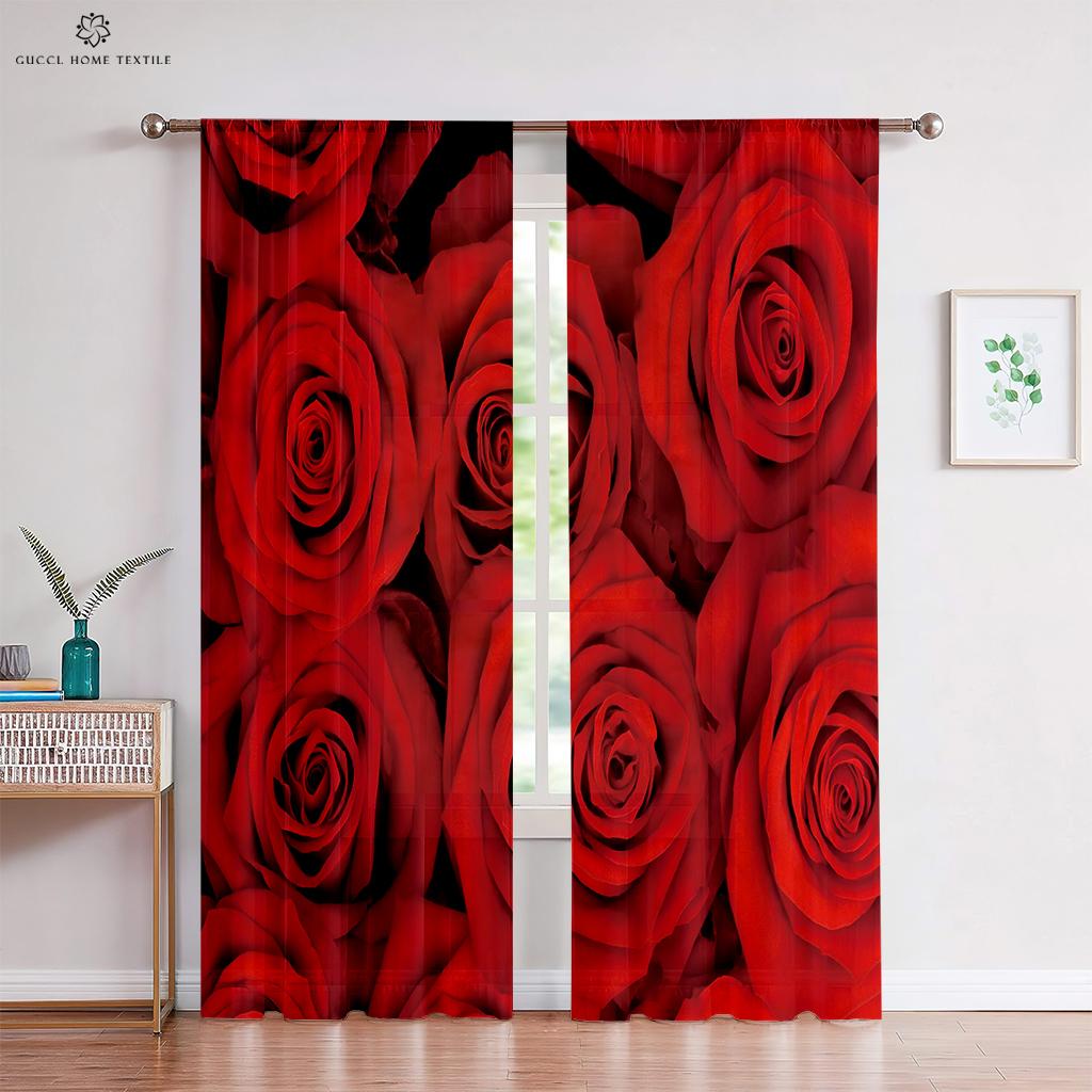 Шторы с розовыми цветами, теплые романтические ретро-красные шторы, украшение окна, чтобы блокировать конфиденциальность, шторы для спальни, кухни, гостиной