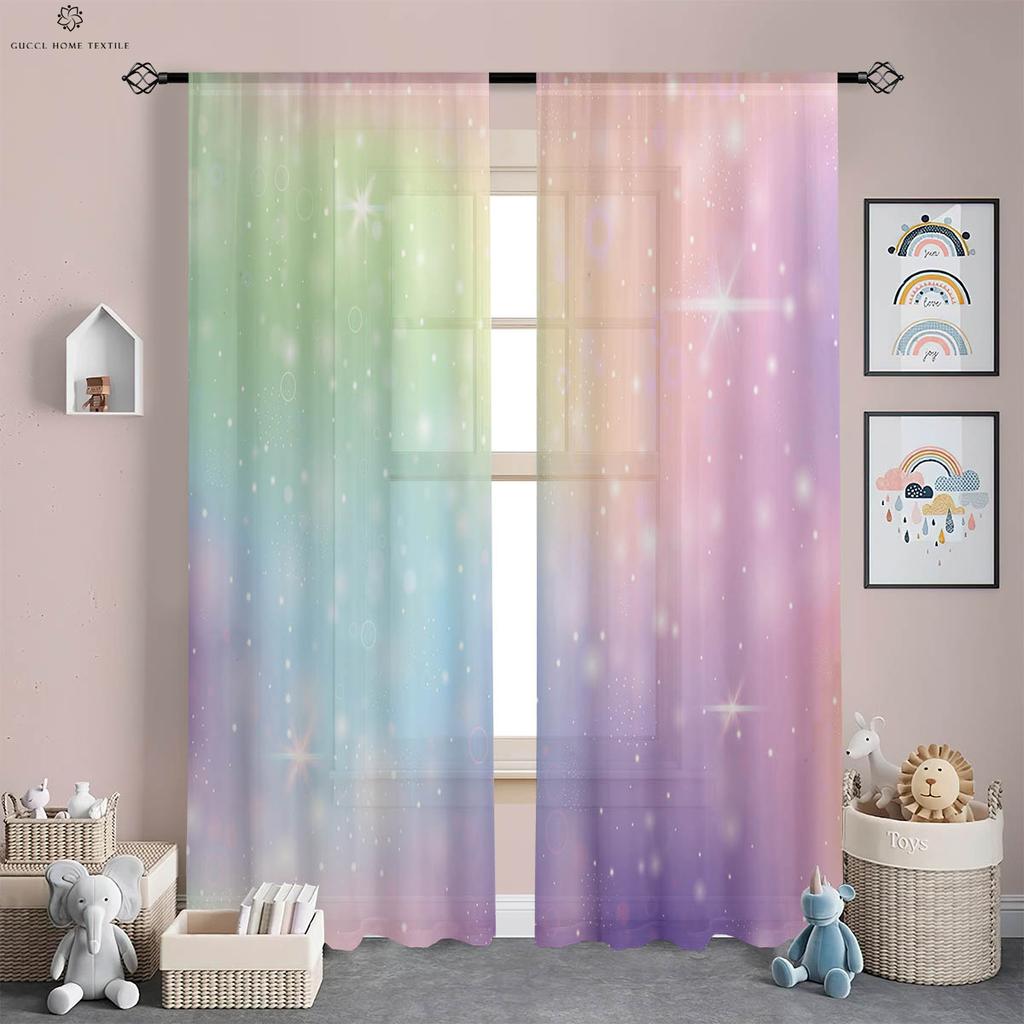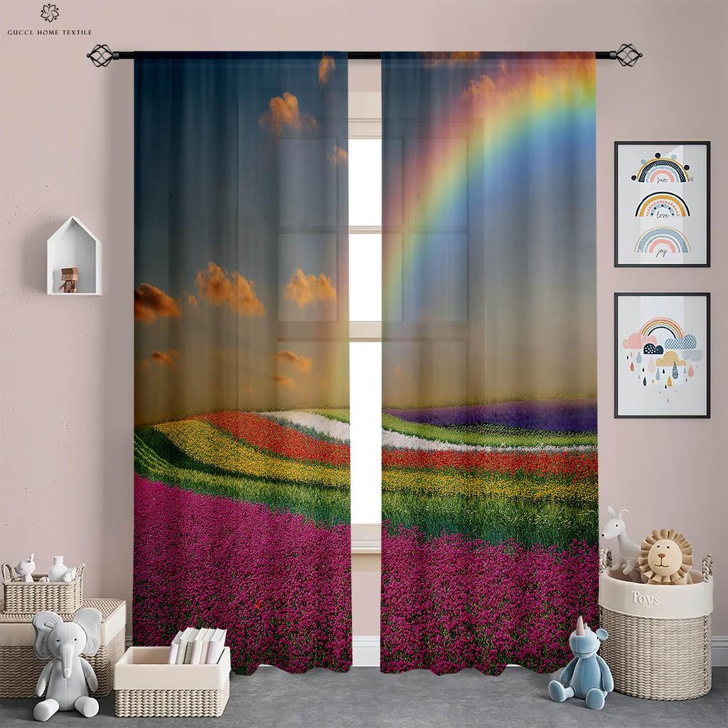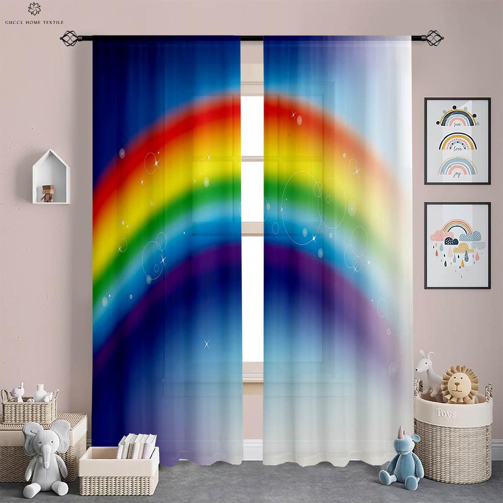 Акварельные шторы с принтом радужной полосы, полиэфирное волокно, спальня, гостиная, кабинет, декоративные, 2 штуки
