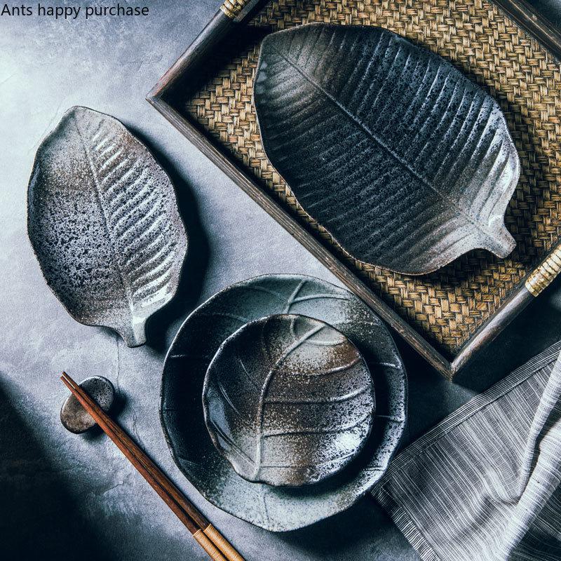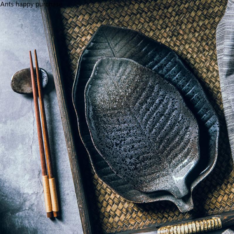 Керамическая тарелка Ресторан Кондитерские изделия Суши Тарелка Украшение в форме листа Нестандартная фарфоровая тарелка Бытовая кухонная посуда Посуда
