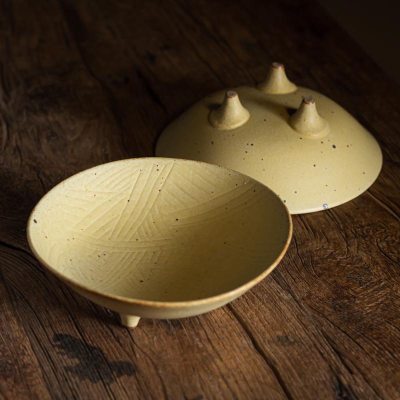 Бежевая керамическая тарелка для фруктов на трех ножках Поднос для закусок Десертная тарелка Салатница Миска для закусок Суповые тарелки Тарелки для сашими