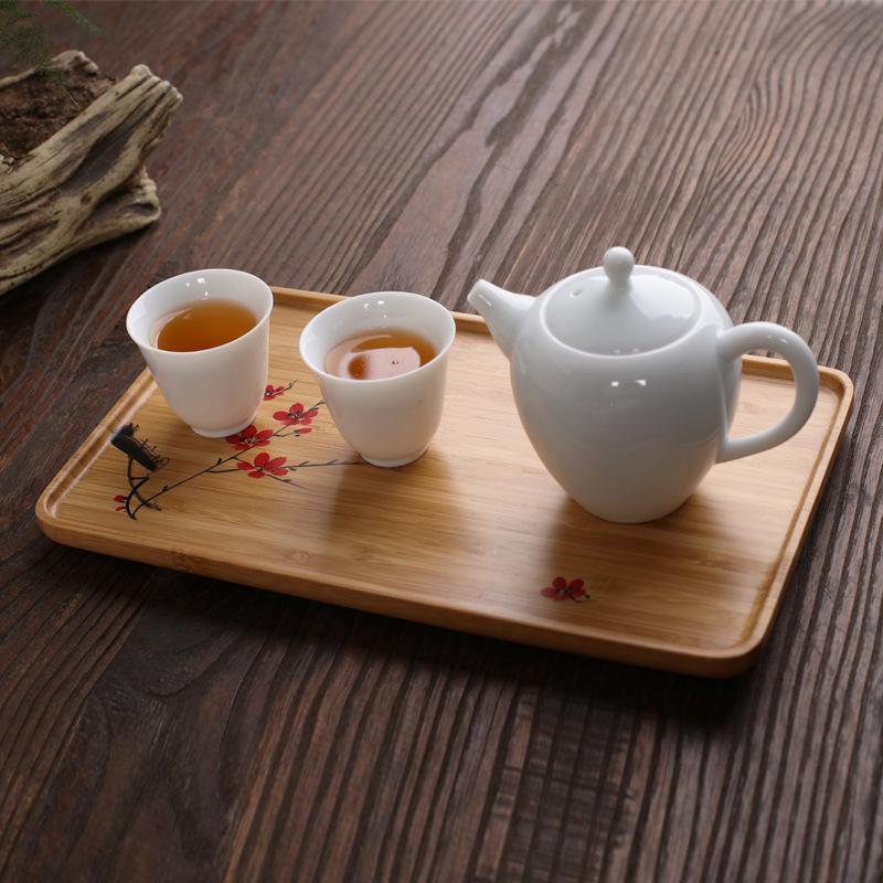 Расписанный вручную поднос для чая из сухого бамбука, простой небольшой поднос для чая, чайный столик, чайный сервиз, аксессуары для офиса и дома, поднос для чая