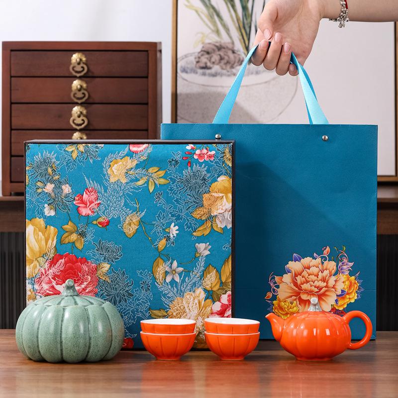Керамический чайный сервиз в форме тыквы, подарочный набор, китайский ретро-чайный сервиз, набор из чайника и чашки