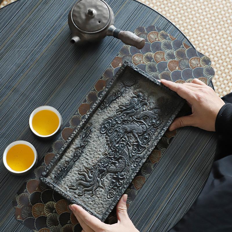 Керамический поднос для сухого заваривания чая, чайный сервиз кунг-фу, аксессуары для хранения воды, квадратный, круглый, большой, лакированный чайный столик, держатель для горшка