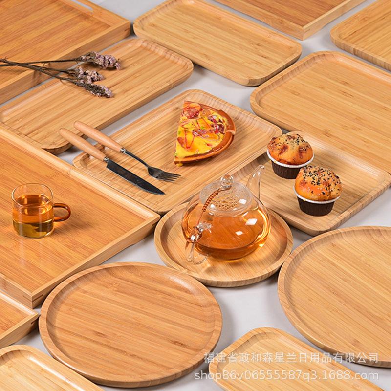 Бамбуковый поднос, бамбуковый поднос для чая, японский бамбуковый поднос, прямоугольный поднос для закусок, круглый чайный сервиз, поднос для фруктов, деревянные подносы
