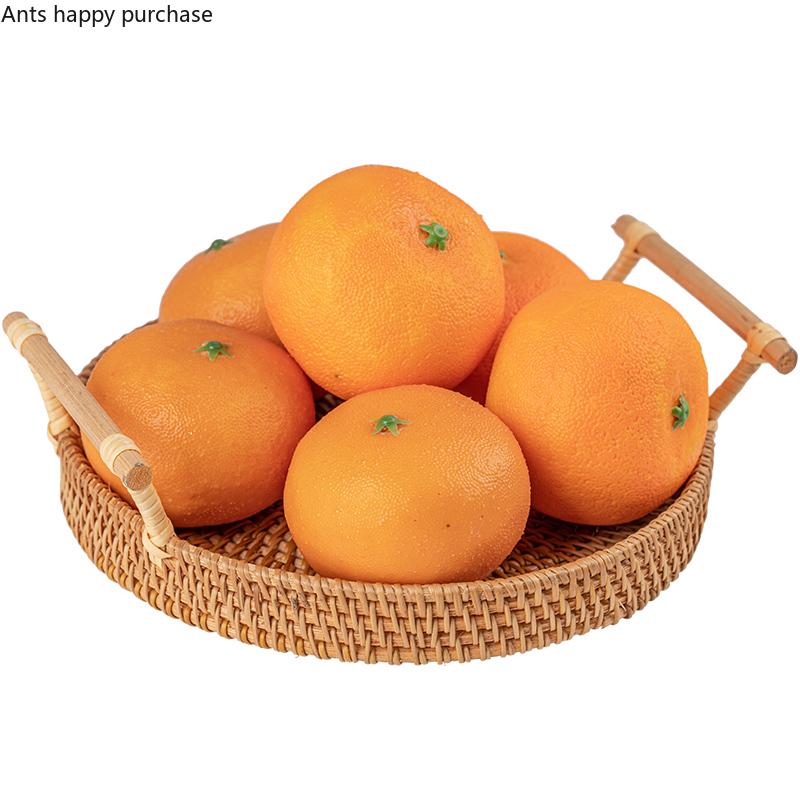 Имитация фруктов Модель Искусственный апельсин Поддельные апельсины Искусственные фрукты Игрушки Еда Фотореквизит Ротанговый поднос для хранения Корзина