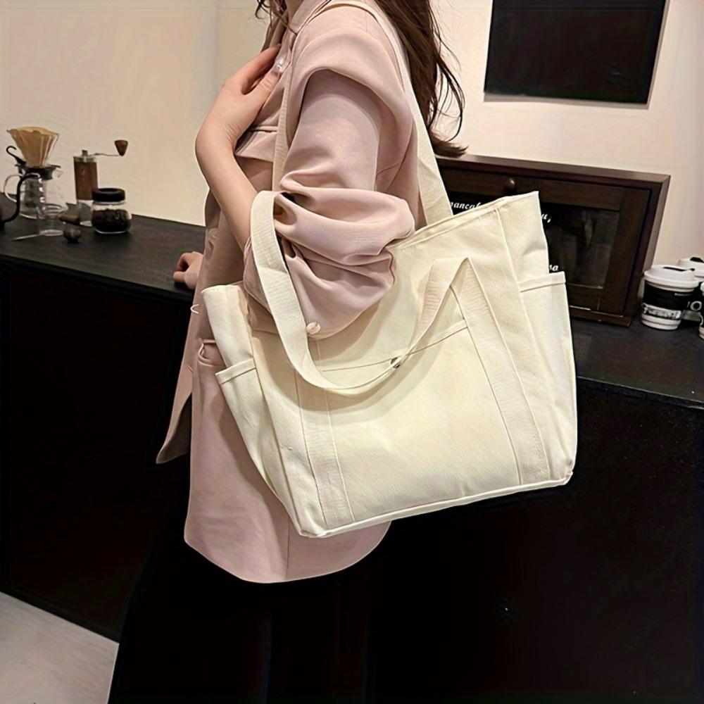 Вместительная холщовая сумка: Идеально подходит для поездок на работу или в колледж — застежка-молния, без подкладки, без украшений